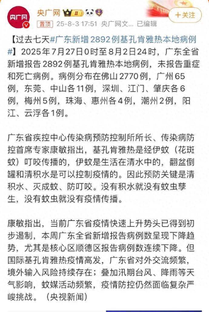 近期,广东发生基孔肯雅热疫情,截至 8 月 2 日已累计超过 7700 余例。